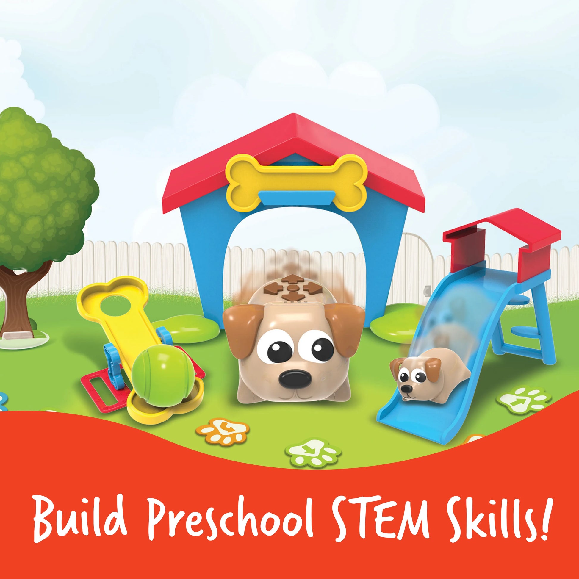Meet the Coding Critters: your first coding friends! These playful puppy pets bring early STEM concepts to preschool learning through 100% screen-free coding. Kids code along with their new pets' storybook adventure, and help the brave Ranger and mischievous Zip have a playtime they'll never forget! Each storybook coding challenge unfolds in the Coding Critters' fun pet playset - can you code Ranger to play hide and seek, fetch a ball from the tennis ball launcher, or catch Zip after a ride down the slide? In addition to following along with the storybook's coding challenges, you can also use the pet playset to design your own code games and more! The Coding Critters also double as cute interactive pets - press Ranger's nose to activate Play Mode, where you can feed, pet, and take care of your new puppy robot pal! You can even make him dance and sing a silly song!